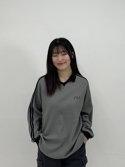韓国制作/秋新作/ストリート刺繍カラーT/ナチュラル/ヒップ/配色ライン