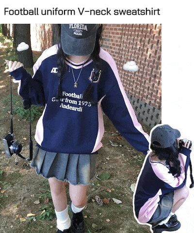 [ヨリオオーバーフィット*-*] 着た瞬間可愛いブロックコア配色ブイネック トレーナー スウェットシャツ