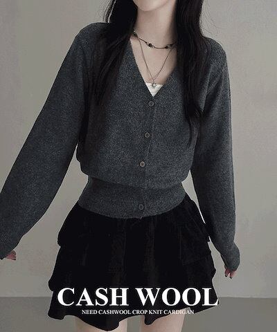 [くびれフィット] ニーズ カシミール クロップ V レイヤード カーディガン 12color