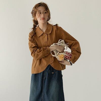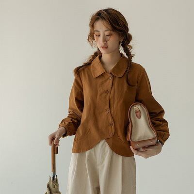 ブラウス ミルドシャツトップス女性2024春夏モデルポロカラーロングスリーブシャツ