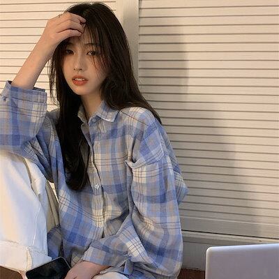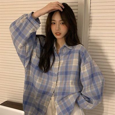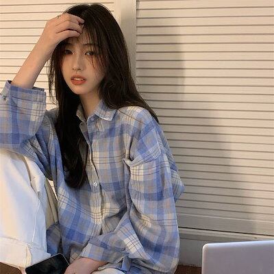 ブラウス チェック柄シャツ女性カジュアル春長袖ブラウスジャケットトップス