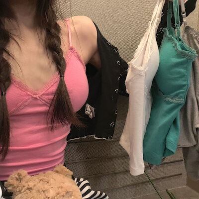 カップ付きインナー レースエッジキャミソールタンクトップ女性用胸パッド付き下着トップス
