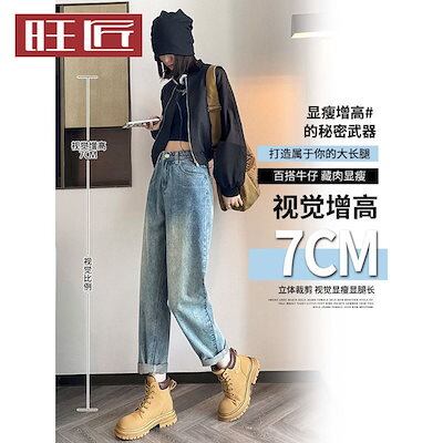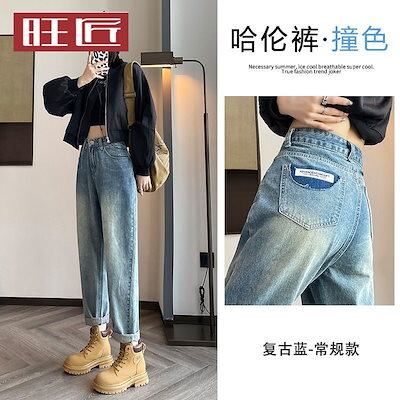 脚長効果!スキニーデニムパンツ テーパードパンツ ハーランジーンズ女性春秋新作ハイウエストルーズパンツ