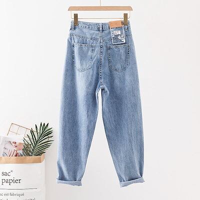 脚長効果!スキニーデニムパンツ テーパードパンツ 2024新作ハイウエストジーンズ女性春秋新作韓国ゆったりハレンチパンツ