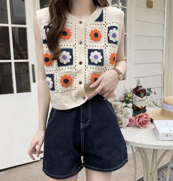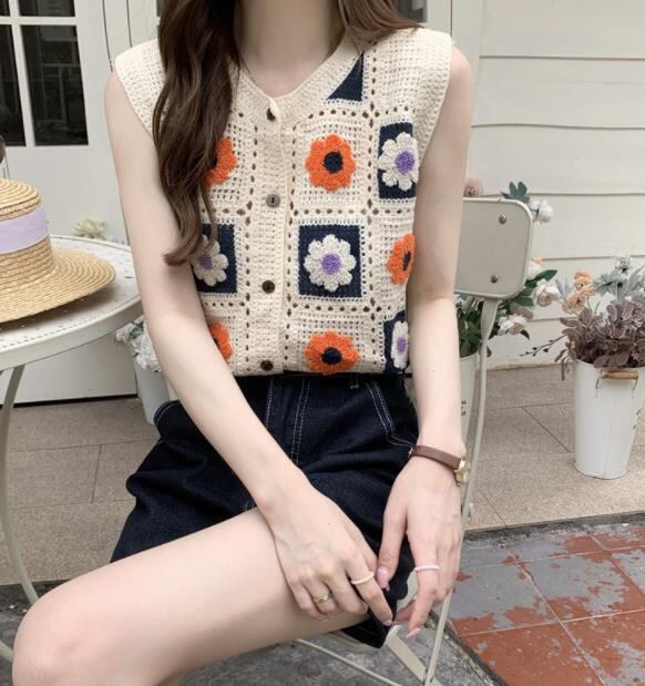 2022春夏新作 レディース 女 袖なし ニット トップス Tシャツ インナー キャミソール タンクトップ 3色