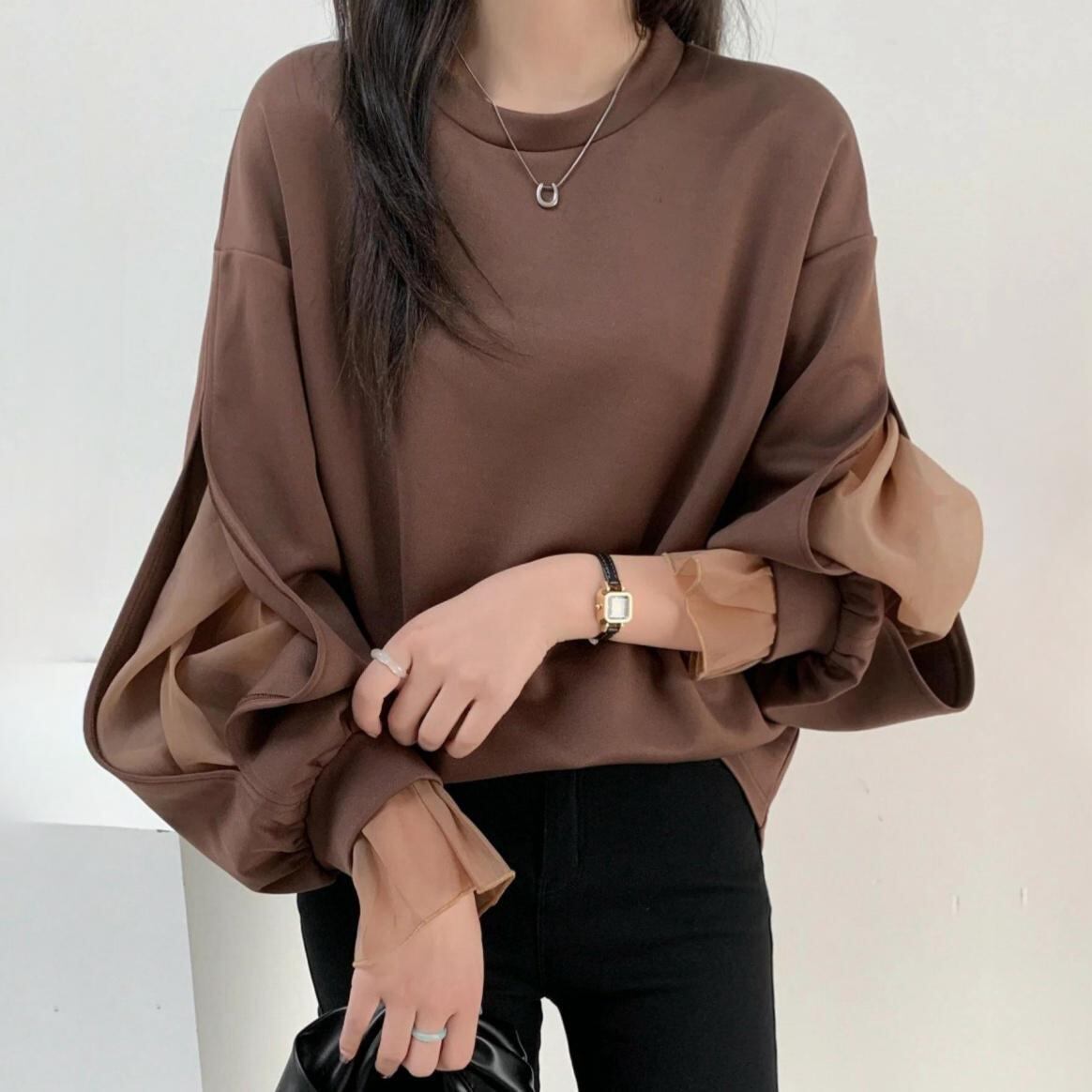 初回送料無料 春新作レディースファッション カジュアル オシャレ 長袖 フェイク2枚 トップス