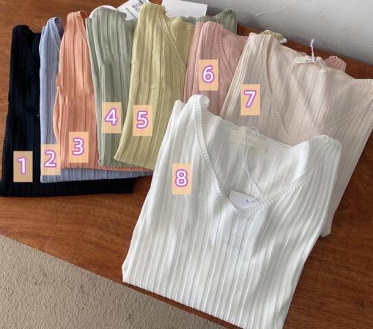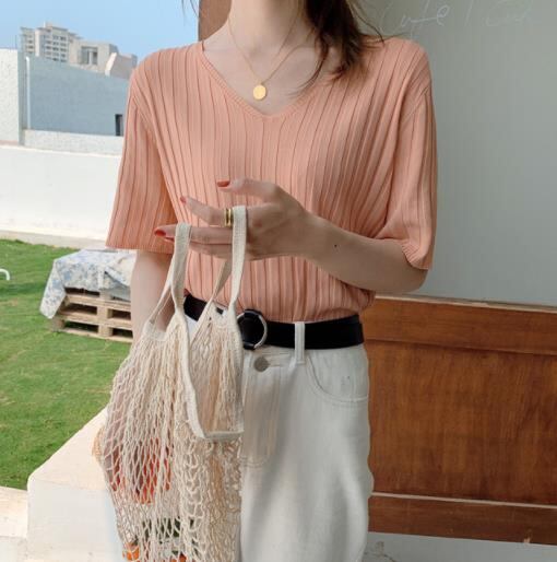 2022春夏新作 レディース 女 半袖 無地 ニット 毛糸 トップス Tシャツ インナー カットソー 8色