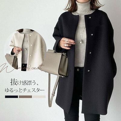 ノーカラーコート レディース 秋冬コート 50代 チェスターコート アウター ミドル丈 トレンチコート 着痩せ 上品 ウィンドブレーカー 暖かい ゆったり 通勤