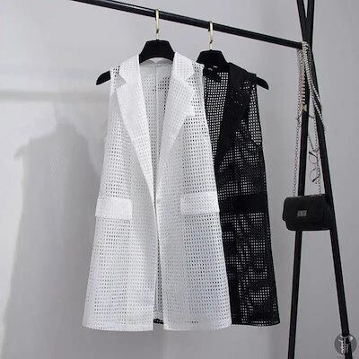 ベストロングベストメッシュ夏涼しいノースリーブコート透け感トップス袖なしフォーマルコーディネートスーツベストレディース