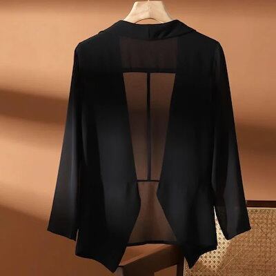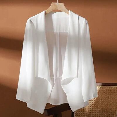 テーラードUVカットシアーレディースアウターボタンレススーツシフォンカジュアル冷房対策焼け対策ジャケット