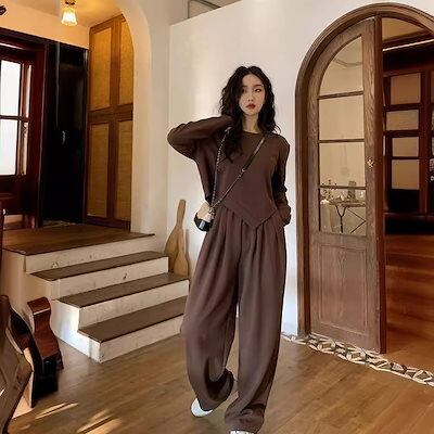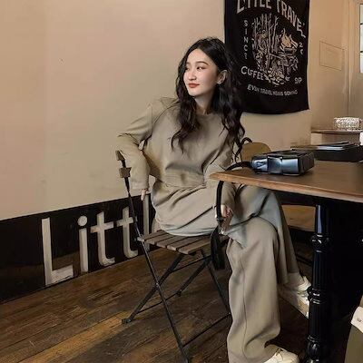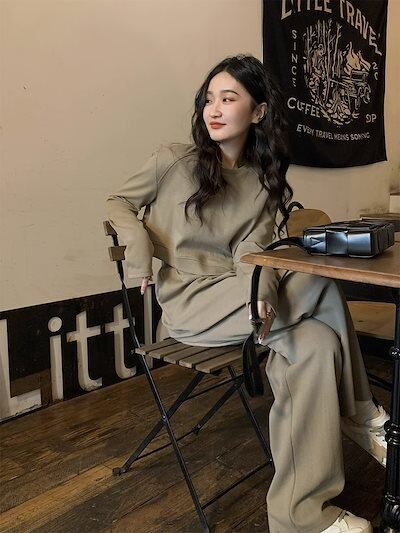 カーキの緩いスポーツウェアのスーツの女性の新しい怠惰なセーターカジュアルなツーピースセット