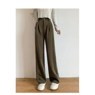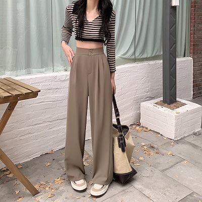 春 無地ズボン ハイウエストズボン脚長効果スーツレディースコーデュロイパンツ パンツ リブストレートズボン ぬくぬく