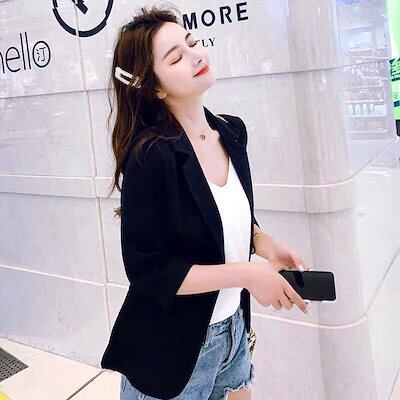 スーツジャケット リネン アウター レディース 7分袖大きめサイズオフィスカジュアル レディース韓国ファッション アウター ミディアム丈 オフィスカジュアル