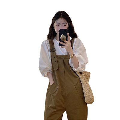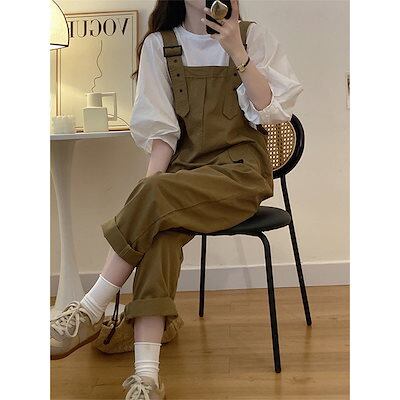 メガ割 メガ割りカジュアルスーツ女性用ゆったりシャツ+ハイウエストでスタイリッシュに着痩せするためのオーバーオール2点セット