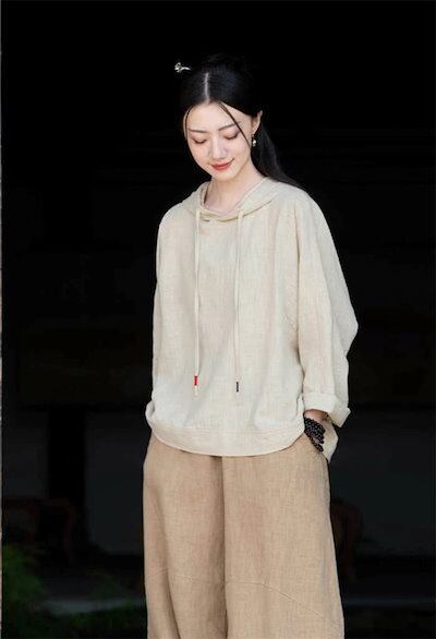 パーカー Tシャツ レディース ブラウス ン フード付き ガーゼ 長袖パーカーTシャツ シャツブラウス 綿麻トップス 無地 大きいサイズ プルオーバー 着心地 オーバーサイズ 長袖 大人
