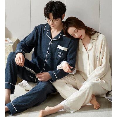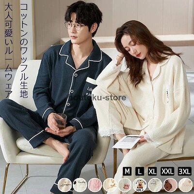 ルームウェア パジャマ レディース 上下セット セットアップ男女兼用 メンズ 長袖 ワッフル生地 スウェット カットソー トップス ワイドパンツ ゆっ