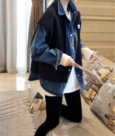 デニムシャツ レイヤード ドロップ ショルダー 羽織り 長袖 ゆったり おしゃれ レディース トップ
