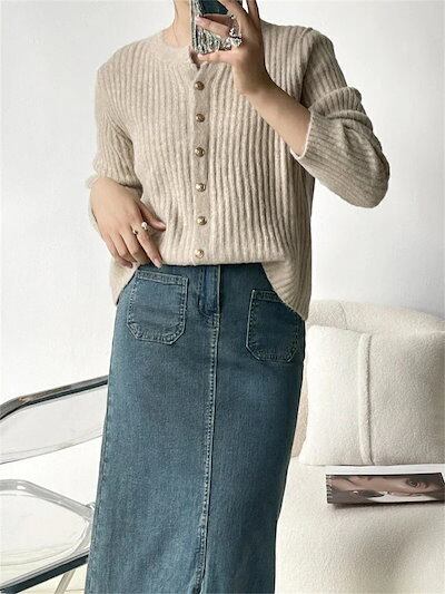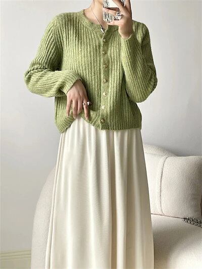 ニット カーディガン セーター カットソー レディース ニットカーディガン 長袖 ニットセーター トップス クルーネック 丸首 前開き 羽織 無地 アウター カジュアル おしゃれ きれいめ 着?