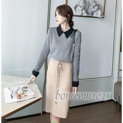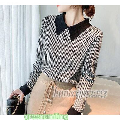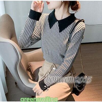 洗えるニット ニットセーター 千鳥柄 長袖 襟付き トップス レディース 秋冬 プルオーバー スウェット