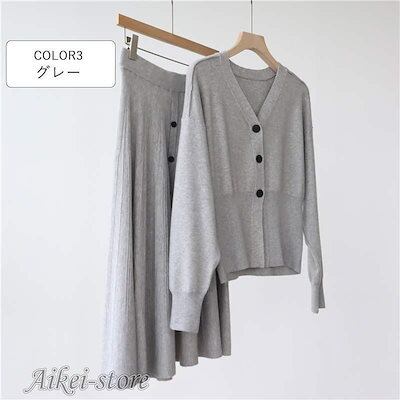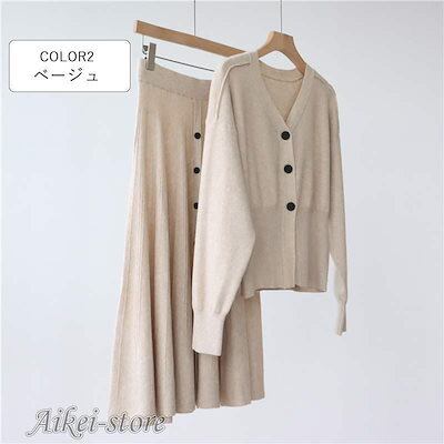 ニット 秋冬 セットアップ レディース スカート 上下セット 2点セット トップス カーディガン 長袖 ニットスカート ロングスカート 無地 カジュアル風
