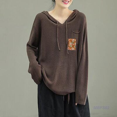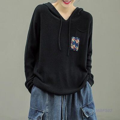 ニット レディース パーカー カットソー トップス フード付き 長袖 花柄 セーター カジュアル ゆったり おしゃれ 母の日 プレゼント ファション