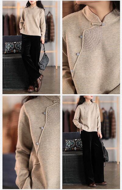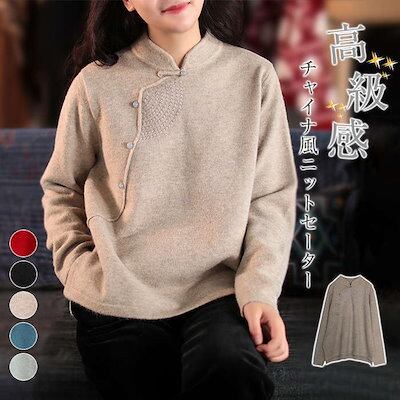 チャイナ風ニットセーター レディース ニット セーター ックニット トップス レディース オーバーサイズ ゆったり 長袖 アシンメトリー トップス 刺繍 ゆったり 大人 おしゃれ シンプル