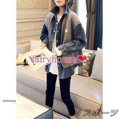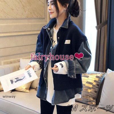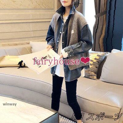 デニムジャケット レディース ニットカーディガン 秋冬 長袖コーディガン 切り替えニットベスト デニムコート 春秋 オシャレデニムコート アウター 30代40代