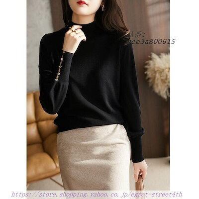 トップス ニット セーター カットソー レディース きれいめ ナチュラルボタン カジュアル 可愛い 長袖 モックネック 大人 オフ シンプル フェミニン おしゃれ