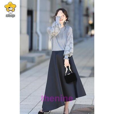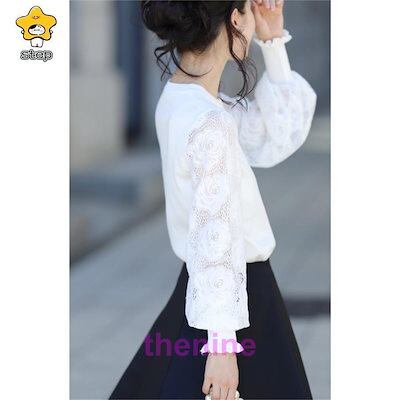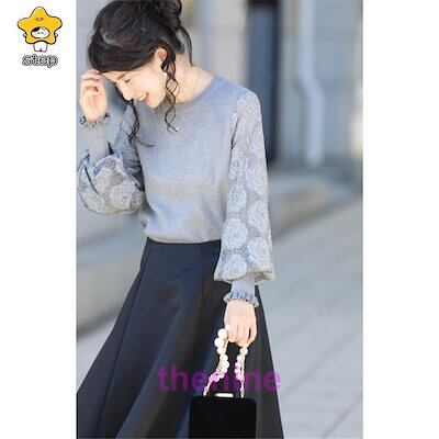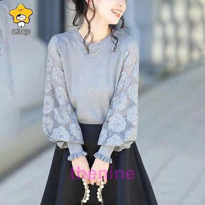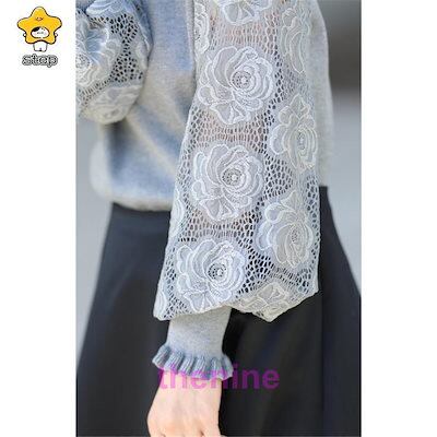 ニット レディース トップス 長袖 秋 冬 セーター レース パフスリーブ ニットソー プルオーバー 春 カジュアル ゆったり オフィス シンプル インナー 重ね着