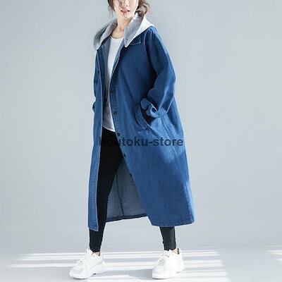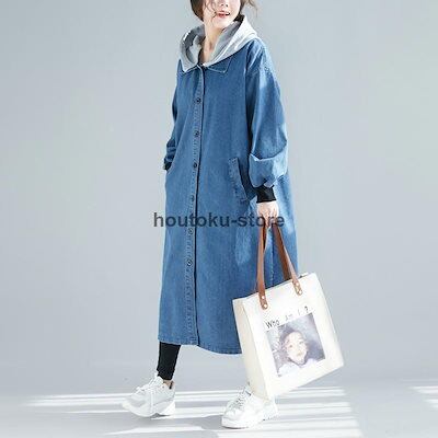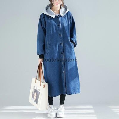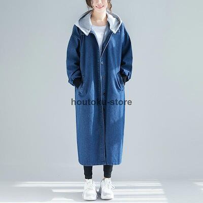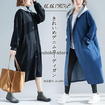 カーディガン レディース デニム コート 40代 ロング ロングコート 無地 長袖 秋 体型カバー 大きいサイズ 着痩せ 通勤 通学 50代 フード付き マキシ ゆったり