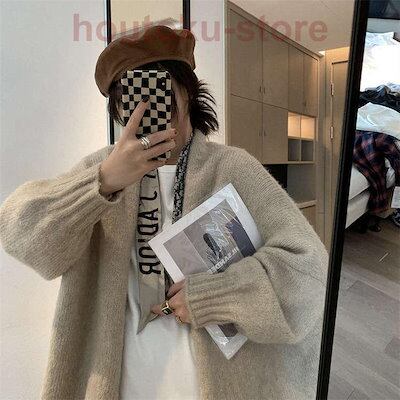 コート 秋冬 レディース ニット チュニック トップス アウター coat カーディガン ニットカーデ 上着 長袖 無地 ノーカラー ゆったり 体型カパー