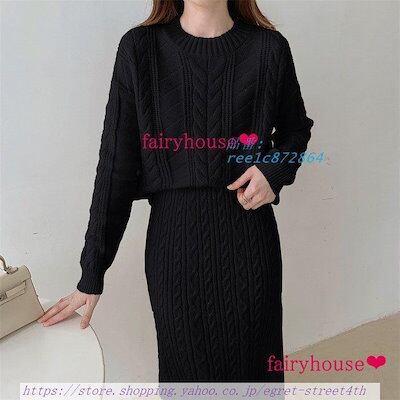 ニットワンピースセット レディース 40代 秋冬 長袖 ニットトップス タイトマーメイドスカート 無地ニットセットアップ 韓国風 大人通勤 オシャレワンピース
