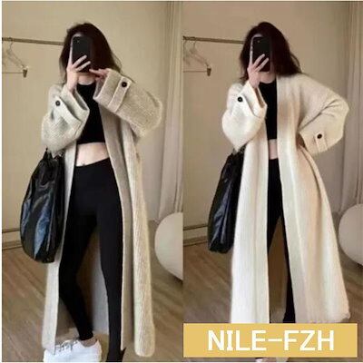 ニットカーディガン レディース ロングカーディガン 長袖 前開き 羽織り 厚手 ロングアウター シンプル コート カジュアル 体型カバー レトロ 秋冬