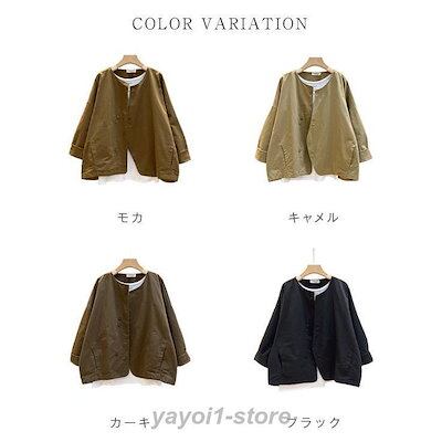 ジャケット レディース 春 秋 薄手 綿混 ショート丈 ノーカラー ジャケット 長袖 コート アウター 羽織り トップス カーディガン とろみコート コットン 着回し