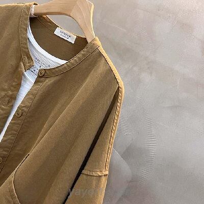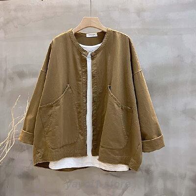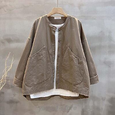 ノーカラー ジャケット レディース 春 秋 薄手 綿混 ショート丈 長袖 コート アウター 羽織り トップス カーディガン とろみ コート コットン 着回し力 韓国風