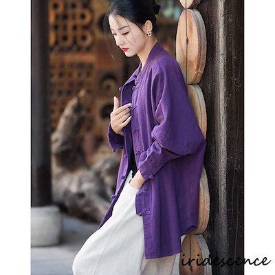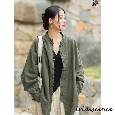 ブラウス ライトアウター スプリングコート 綿麻 レディース 長袖 カーディガン 春服 コットンン チャイナボ コットン ン 大きい