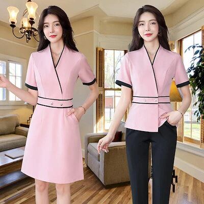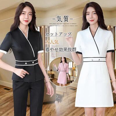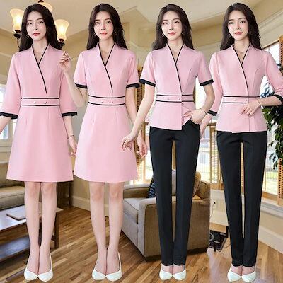 【2枚購入で 2oo円OFF! 】スーツセットアップユニフォーム エステ サロン通勤 レディース 女性 制服おしゃれ エステ制服半袖 七分袖 ジャケット2点セットシャツ+ズボン涼しく楽ちんセットアップ