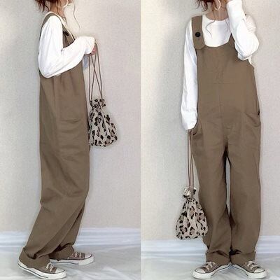 ニュースタイル 日韓 ハイウエスト サロペット 着痩せ ゆったり スラックススラックスパンツ