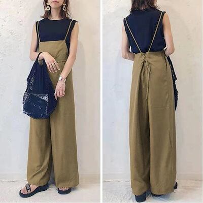 ニュースタイル 日系 無地 流行り カーゴパンツ サロペット ロングパンツ オシャレ 着痩せ サロペット スラックスパンツ