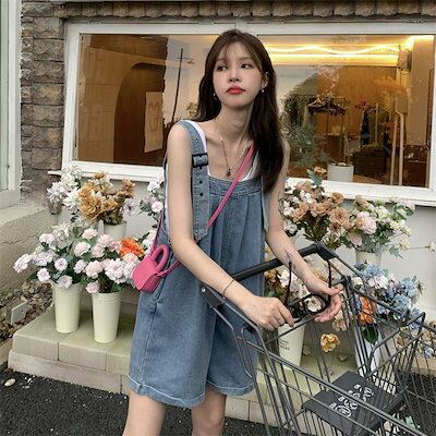 2024 夏 レディース デニム オーバーオール ins 韓国風 ワイド ハーフパンツゆったりスリム見えおしゃれ ワイドパンツ デニム ハーフパンツ ショルダー 調節可能オーバーオール