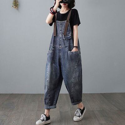 2024 春夏秋 サロペット デニムボトムス ショットパンツ デニム ストレート ロングパンツ ワイドパンツ 韓国ファッション オーバーオール ゆったり 着やせ 個性デザイン 母の日のプレゼント