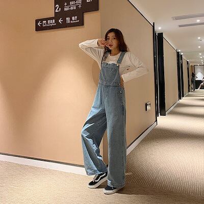 2024 新作 春 デニムサロペット スラックスワイドパンツカジュアル百掛けスラックス オールインワンパンツサロペット レディース