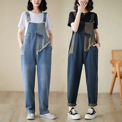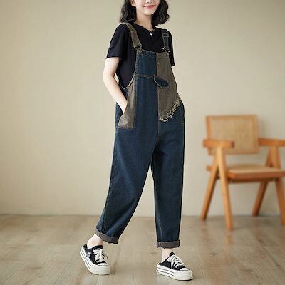 ニムサロペット レディース 春秋 大きめ ゆったり ワイドパンツ 着痩せ オールインワンパンツ
