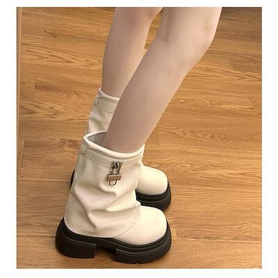 ショートブーツ 靴 レディース シューズ 厚底パンプス ブーツ ローヒール 太ヒール 女の子用 スクエアトゥショートブーツ 美脚 カジュアル オールシーズン