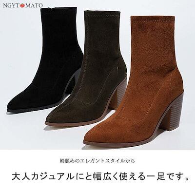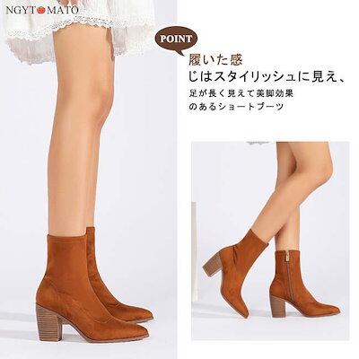 ショートブーツ レディース ブーティー ブラック ハイヒール ショート丈 スエード調 26.0cm ポインテッドトゥ 履きやすい 歩きやすい コーンヒール