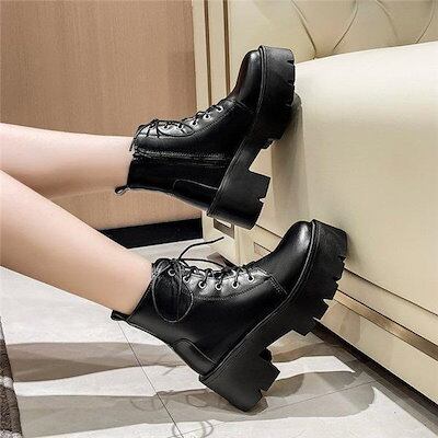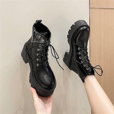 新品(第1弾セール中)レースアップブーツ ブーツ ショートブーツ 厚底ブーツ 編み上げブーツ レディース 靴 ショート丈 6.5cmヒール シンプル ベルトデザイン 秋冬