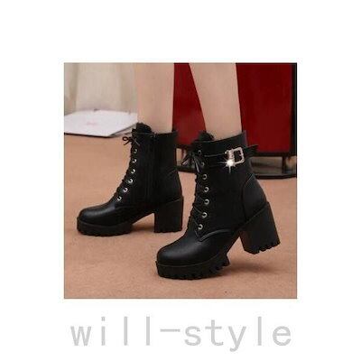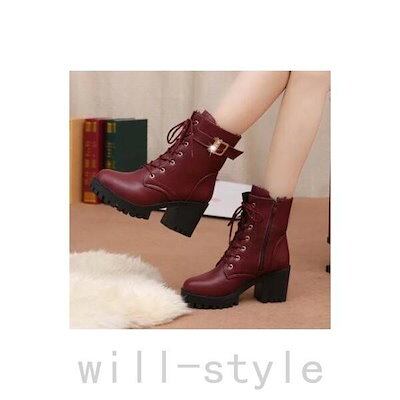 【beifengzh 0 ng】新作ショートブーツ レディース ハイヒール ヒールブーツ シューズ ブーツ ブーティ レースアップ 靴 太めヒール 美脚 歩きやすい 秋 通勤 OL 30代 40代