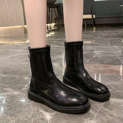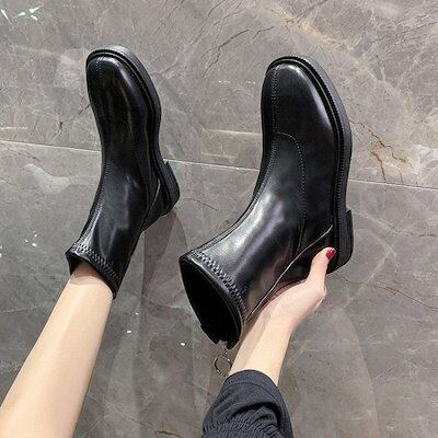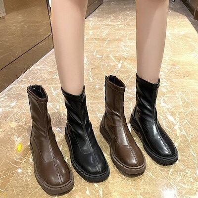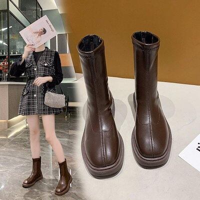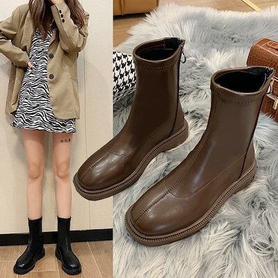 【beifengzh 0 ng】新作ショートブーツ レディース ローヒール 厚底 シューズ 靴 無地 PU革 ・ブーツ カジュアルシューズ 美脚 歩きやすい 秋冬 軽量 歩きやすい 通勤 通学