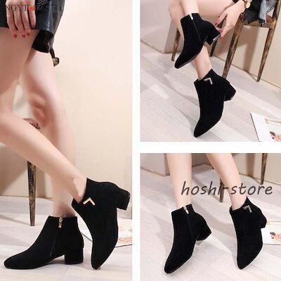 早く新品を選んで!ショートブーツ レディース 太めヒール ブーツ ポインテッドトゥ ショート丈 サイドゴア スエード調 黒 履きやすい 歩きやすい おしゃれ 美脚 大人 カジュアル