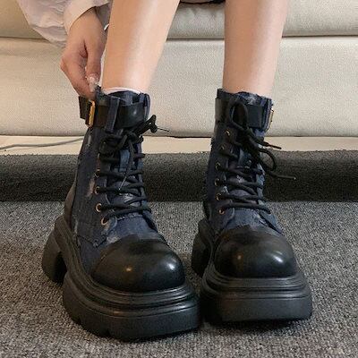 【3日以内出荷】メガ割 厚底ブーツ 厚底ブーティー 厚底シューズ ブーツ レディース英国風マーティンブーツ 2023秋新作 底上げ厚底ショートブーツ デニムバイクブーツ韓国ファッション